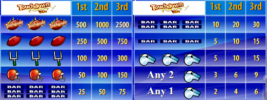 Touchdown Fever is single pay line slot game. The objective of this game, as any other slot machine, is to match symbols in a line to a winning combination. There is not real strategy in slots; rather this game is based on pure chance. Payouts differ depending on what symbols match a winning combination on a line.